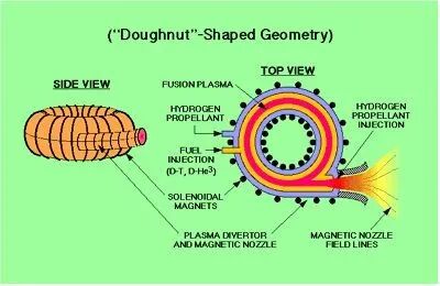 既然这事已经扯到了核聚变,就没理由不说一说“聚变直喷发动机”,一种停留在传说中的火箭发动机。总结来说,离子发动机本质上是用电磁场加速离子,目前理论极限是VASIMR的300km/s,离速度极限30万km/s还有不少上升空间。但是,先聚变发电,再用电力驱动离子,能量利用率并不高。就好像用汽油发电,再用电动机驱动汽车,莫不如直接用汽油发动机。于是,有人提出了一种惊为天人的发动机思路:直接将聚变反应后的高温等离子体引出来做推进剂,喷口速度可以达到20000km/s,光速的十五分之一。在这种喷射速度下,只要每秒喷出4克燃料,推力就达到了8万牛。尽管聚变直喷发动机在技术上还是没影的事情,但好歹理论已经趟到这了,就算物理学一直没突破,再过几百年也还是有盼头的。若真有一天,人类实现了以1G加速度持续星际飞行的目标,离太阳系最近的半人马座三星只有4.22光年,想想还有点期待呢!