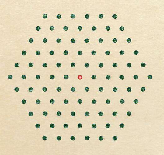 然后,释放出来的中子又去轰击其它的U235,这样就形成了链式反应,释放出大量的能量。绝大多数的其它元素都没有U235和钚239的这两个重要特点:比如,你用一个中子去轰击碳12,那么就可能变成碳13,不会发生裂变,也不会释放中子和能量。这就是为什么原子弹要选择U235和钚239的主要原因。前面我们说过:如果把原子比喻成地球,那么原子核只相当于1个直接300米的球,中子相当于一个直接10米的球,所以想要让中子击中原子核是非常困难的。很可能会出现一个中子轰中一个U235后释放出来的中子轰击不到其它的U235,那样释放出来的能量就非常的少。比如下图:中子击中几个U235以后,就再也碰不到其它的U235了,反应就终止了。这个时候,铀块就只能发热而不会爆炸。最简单的办法就是增加U235的数量:当U235的数量越多,那么中子碰到的几率就越大,就越容易发生爆炸。比如,下面图中增加了U235的数量,中子轰击到的U235就增加了很多。所以,想要发生链式反应需要一个最低量的铀块,也叫做“临界质量”。当铀块的质量小于临界质量,铀块只会发热而不会爆炸;当铀块质量大于临界质量,铀块就会发生爆炸。铀235和钚239自然状态的临界质量分别为48公斤和16公斤。也就是说:如果你把48公斤的U235,或16公斤的环239,放到一起,然后引爆,就会发生比较充分的链式反应。低于这个量,则无法发生爆炸。那么,有没有办法不用那么多的U235也能让充分反应呢?大家看下面的图:原本U235非常的分散,我们用一种方法把它们聚集到一起,非常的紧密,这样中子就更加容易的轰击到它们。